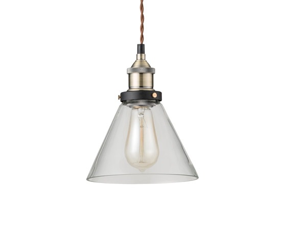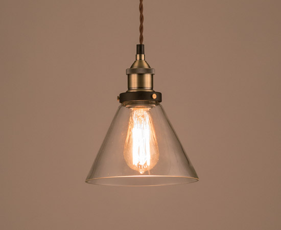 使われている電球は、レトロなフォルムが人気となっているエジソン電球。このレトロな電球を存分に楽しむためにも、透明なガラスのシェードは最適と言えます。半透明のガラスシェードでは、下方向に光を出し、シェードを通過した光は、周りをほんのり明るくしてくれると言う具合ですが、この透明のガラスシェードであれば、エジソン電球の柔らかな光を空間全体に広げる事が出来るはずです。