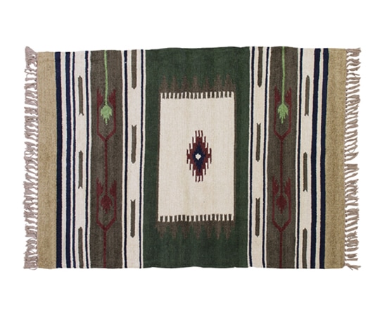 使われている素材は、ビスコースとコットン。ビスコースとは、合成繊維として知られた素材で、光沢があり見た目や肌触りが良く、落ち着いた雰囲気が演出できます。主に春夏向けのラグに使われることが多く、水分が付着するとシミになる可能性があるので注意が必要です。