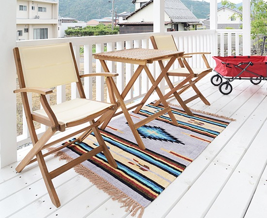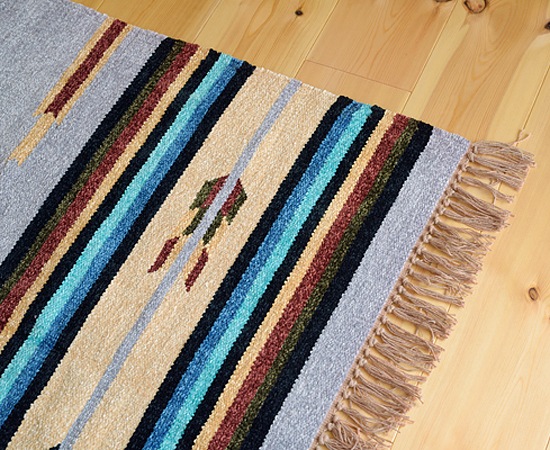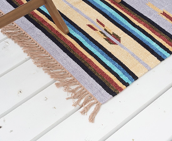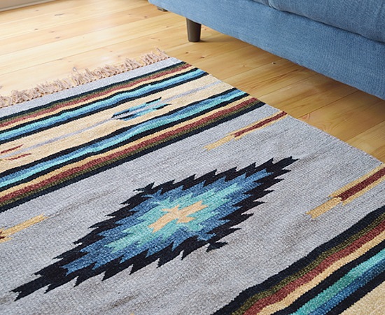 ブルーのカラーが爽やかな雰囲気を演出するキリムラグ。