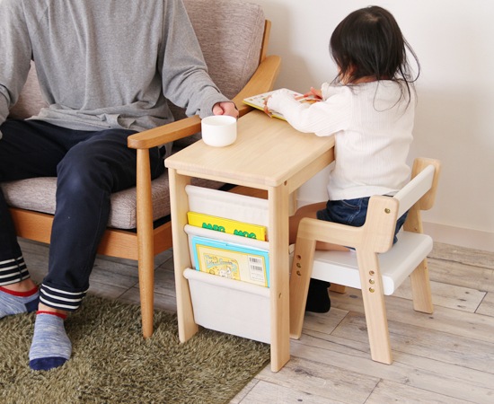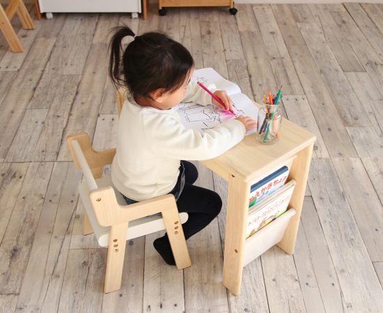 小さなお子様がいらっしゃるご家庭では、子供用の家具を用意されている方も多いですよね。専用の椅子を置いてあげるだけでも、自分の場所と言う意識が生まれ、そこに座って遊んだりしてくれます。でも、椅子だけだと、テーブルが合わない場合も多く、それ用の机を要してあげる事もちょっとしたポイントとなります。ご紹介するのは、椅子とデスクをセットにしたスタディセットです。