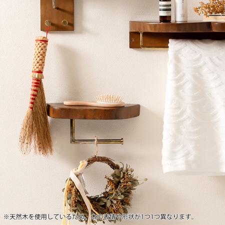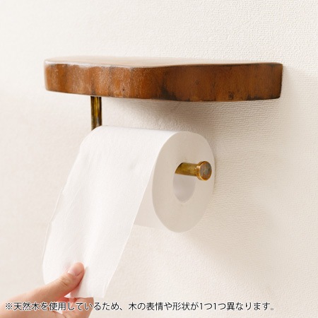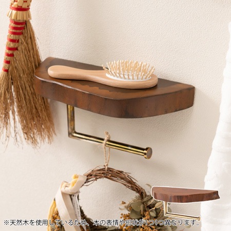 ペーパーホルダーにマホガニー材の棚をプラスしたアイテム。