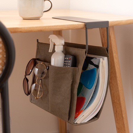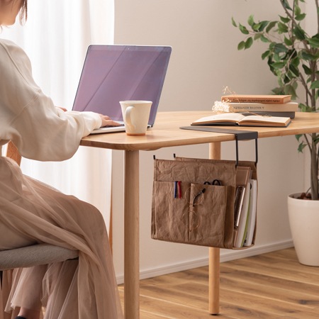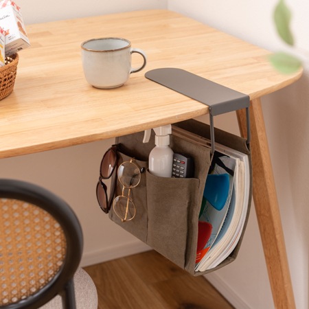 自宅にあるダイニングテーブルやローテーブルなど、収納が付いていない机は多くあります。食事をするだけだったり、飲み物を置くだけだったりと、収納が無くても不便には思わないという方も入らっしゃると思いますが、筆記用具やハサミ、メモ帳などが必要になる事も有りますし、机の上に置いたままではスペースが狭くなってしまう事も有りますよね。ご紹介するのは、机の下のちょっとしたスペースを有効活用できる収納バッグです。