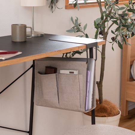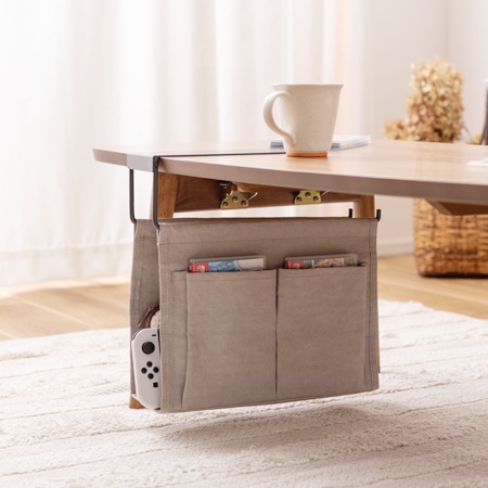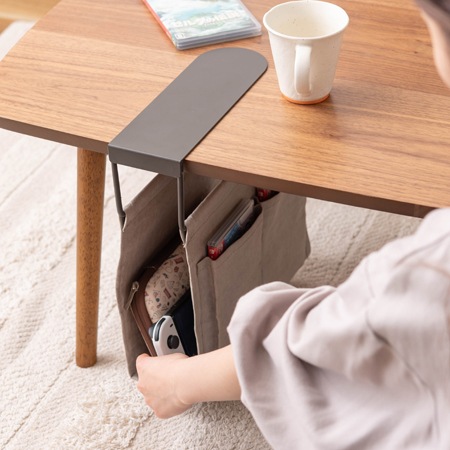 テーブル下のデッドスペースを有効活用できる収納バッグ。