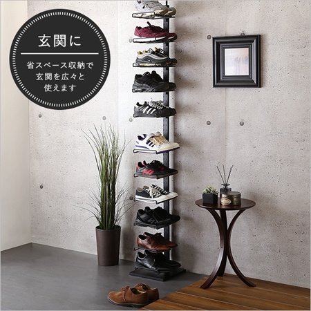 意外と困る靴の収納。1人暮らしの方では、玄関のスペースが限られていてシューズラックが小さく、靴が入りきらないという方も入らっしゃるようです。また、ブランドの靴をコレクションしている方も、お気に入りの靴をどのようにディスプレイするかで悩まれている方も入らっしゃるのではないでしょうか。今回ご紹介するのは、靴の収納としてだけでなく、ディスプレイラックとしても使える突っ張り棒を活用したシューズラックです。省スペースでも設置ができるので、スペースに限りがある方にもおすすめ。棚間の高さ調節も可能ですよ。カラーはブラックとホワイトの2色が用意されています。(※設置ができる天井高は最大で2600mmとなっています。ご購入前に天井高の計測をお願いいたします。)