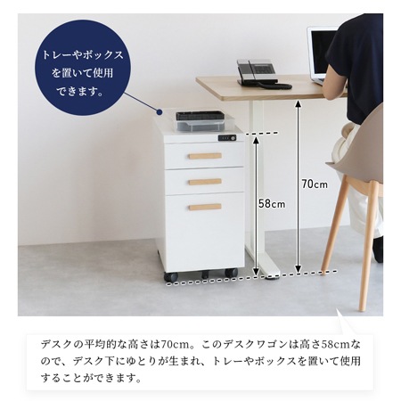 スチール×天然木の温もりのある優しいデスクワゴン。