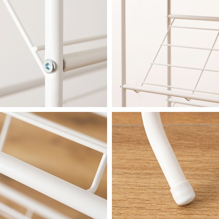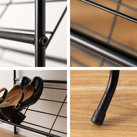 (収納目安:9足)素材 スチール、合成樹脂化粧繊維板 塗装 粉体塗装※ 重量 約4kg 小箱サイズ(mm) W620×D290×H90 小箱重量 約5kg カラー ブラック、ホワイト 生産地 中国 注意事項/th> S字フックは付属していません。