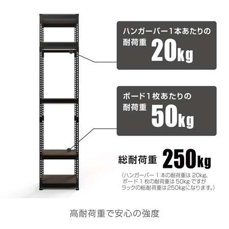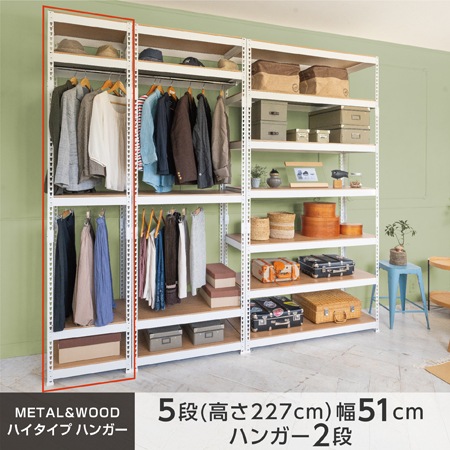 メタル&ウッドラックシリーズ ハンガーバー付きシェルフ5段(幅510mm)