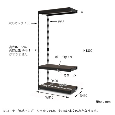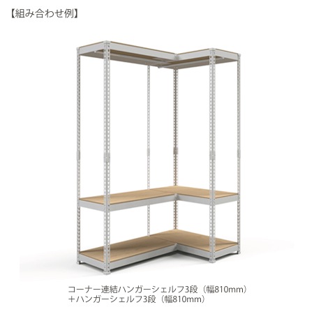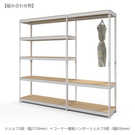 ※メタル&ウッドラック用コーナー連結ハンガーシェルフのみの販売です。