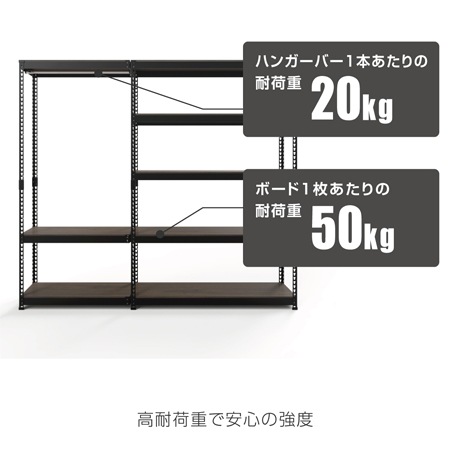 メタル&ウッドラックシリーズ ハンガーバー2本付きシェルフ5段(幅510mm)