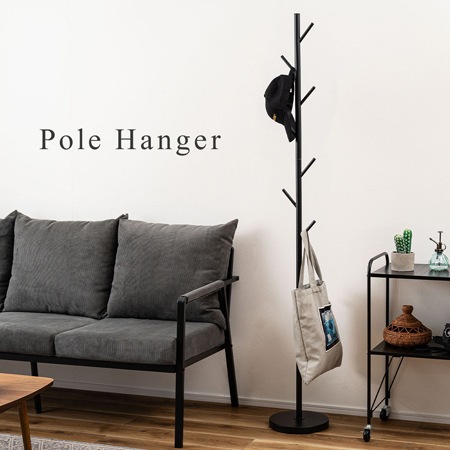 シンプルですっきりとしたデザインのポールハンガー。