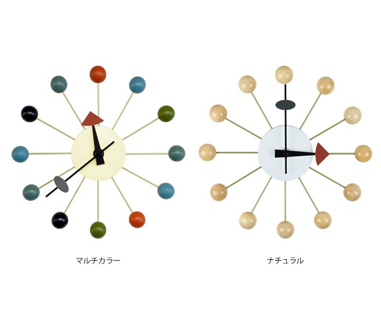 そんな人気デザイナーがデザインしたこの時計は、独創的であり芸術性も感じられるアイテムです。この時計を壁面に飾っているだけで、おしゃれな空間を演出してくれますが、ここに照明を当ててあげると、ボール部分の陰影が立体的なフォルムをさらに強調することになり、その存在感を増す事が出来ますよ。