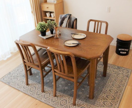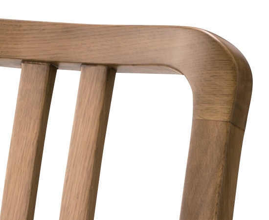 使われている素材は、オーク材。日本ではナラ材として使われている所も有りますよね。この木材の特徴は、堅くて丈夫で、木目も綺麗に出てくれます。家具として使われるのはもちろん、その丈夫な材質を活かして、建具や床材としても使われています。今回のこの木材には、さらにキズに強いウレタン塗装が施されています。椅子は、使用頻度の高い家具ですから、このような塗装が施されているのはうれしいですよね。