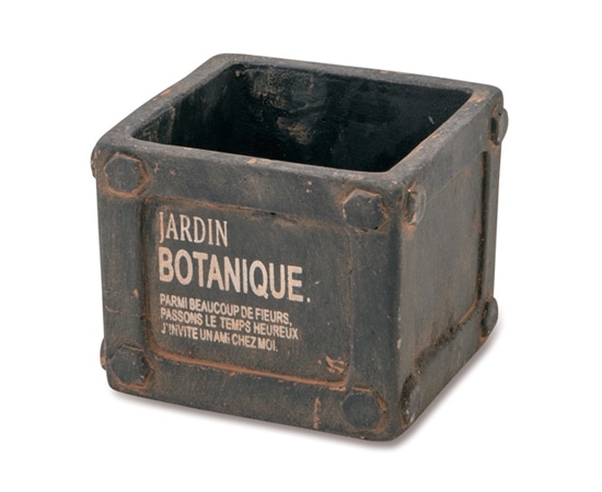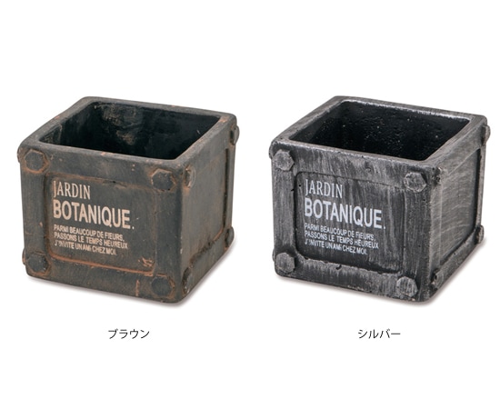 空間にアクセントを付けるのに役立つ様々な小物達。最近では、フェイクグリーン等を使い、自然を取り入れたような雰囲気も演出する方も多くなっていますよね。フェイクグリーンは、水や土が必要ないので、扱いも簡単ですから、カフェ等の店舗でも多く使われています。今回は、そのフェイクグリーン等を飾る時に活躍するグリーンポットをご紹介いたします。このポットは、コンテナのようなデザインで、インダストリアルな表情が全面に表現されたアイテムになっています。