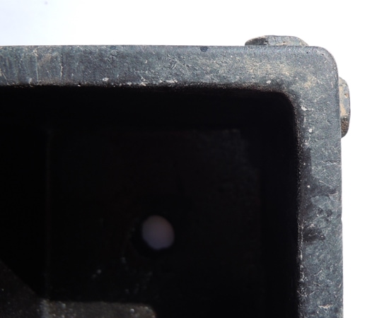 使われている素材はセメント。そこに塗装を施す事により、セメントの表情を抑えています。また、光沢のあるシルバーや、マットなブラウンのカラーで、使い込んだような表情を演出することで、さらに雰囲気のあるアイテムになっています。ポットの底には穴がありますから、本物のグリーンを入れて使う際は、ソーサー等を敷いて使ってくださいね。(※ソーサーは付属されていません。)