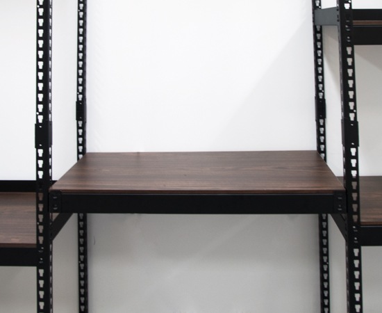 インダストリアルなスタイルが演出できる事で人気のメタル&ウッドラックシリーズ。組み立ての際にボルトを必要としないので、組み立ても簡単。棚と棚の間にボードを設置すると、収納量を増やしたり、机として使ったりする事も出来ますよね。今回は、そんな時に役立つアイテムをご紹介いたします。