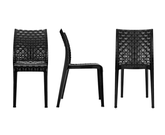 このチェアは、イタリアの家具ブランド「Kartell」から販売されている椅子で、日本人デザイナー「吉岡 徳仁」氏がデザインした椅子です。椅子の名前は「AMI AMI」。名前の由来は「編む」からきており、デザイナー吉岡徳仁の故郷である日本の伝統文化の織物から誕生しました。手の込んだ編み込み模様は、複雑な工程を経て一体成形で創り出されます。Ami Amiは東洋文化の魅力とポリカーボネートという革新的素材を一つにまとめた作品です。