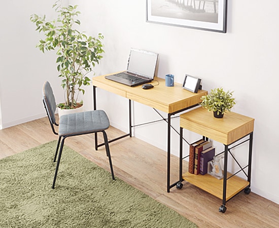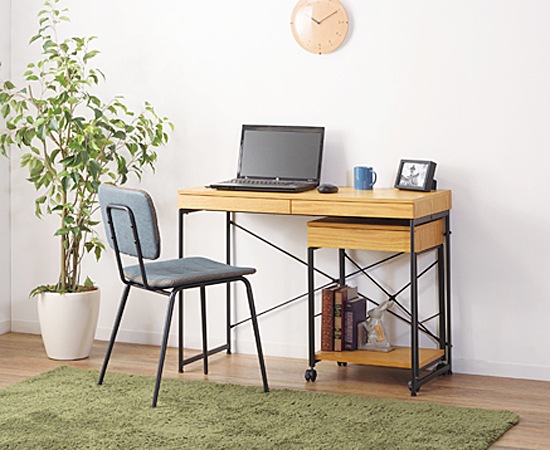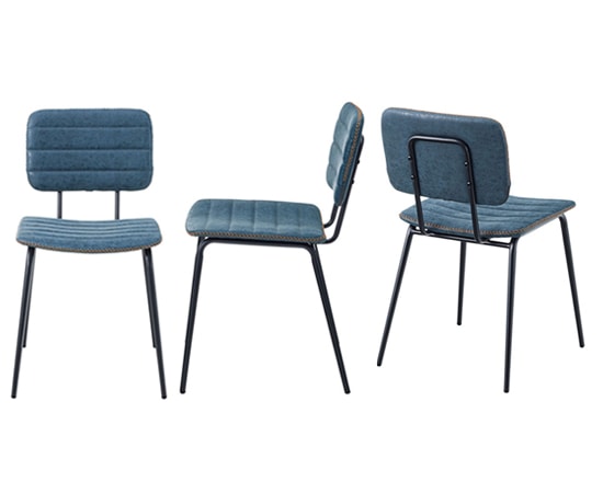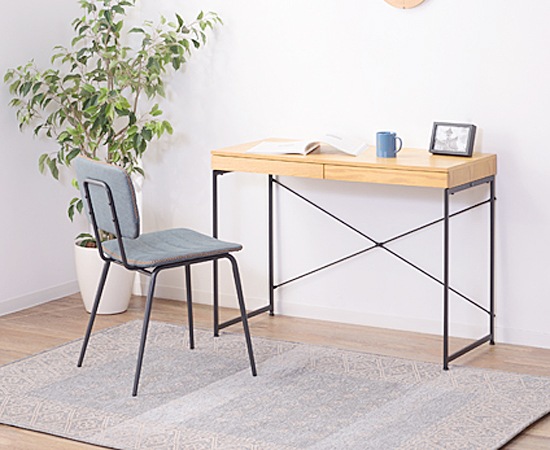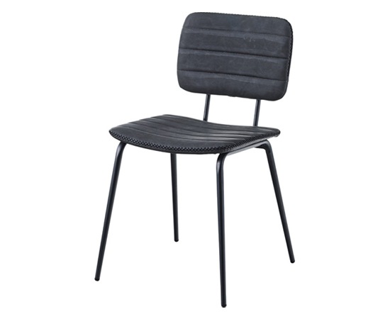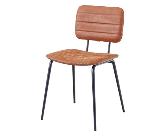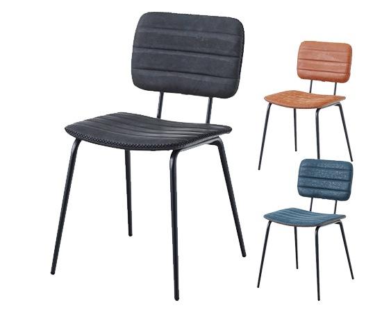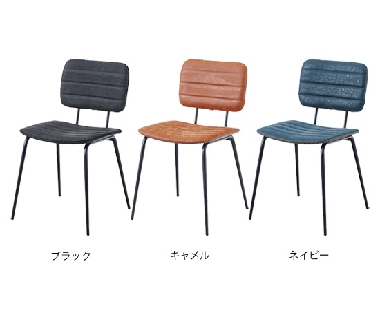 この椅子のフレーム使われているのは、スチール素材。そこにマットな表情が演出できる粉体塗装を施すことで、落ち着きのある雰囲気をプラスしています。座面や背もたれ部分には、ソフトレザーを採用。サイドのステッチと色ムラのあるソフトレザーは、カジュアル感もありながら高級感も演出できます。カラーは、ブラック、キャメル、ネイビーの3色を用意。ソフトレザーとスチールの組み合わせは、人気のインダストリアルスタイルにもピッタリなデザインで、収納ラックやデスクなど、他の家具ともコーディネートしやすいのではないでしょうか。