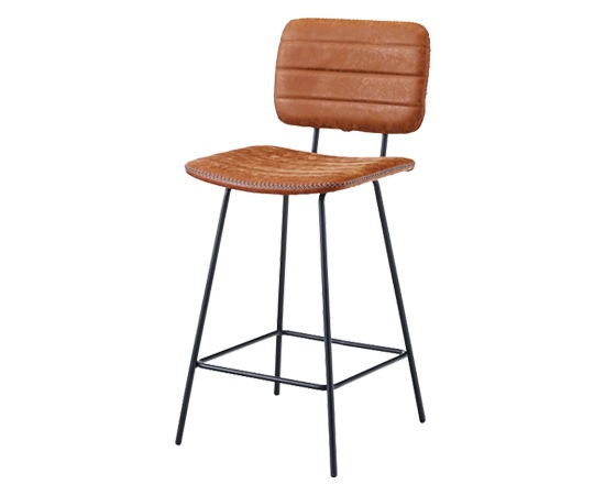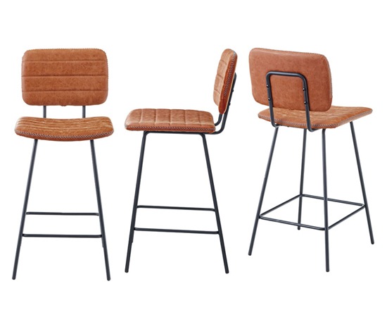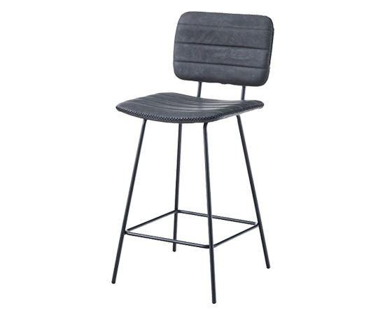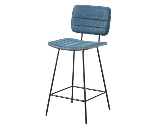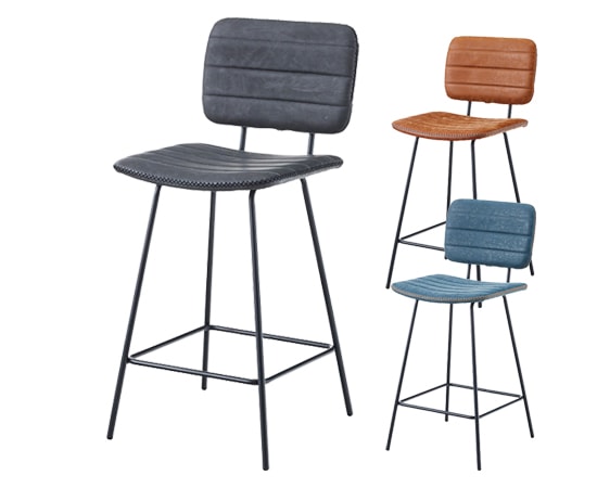 カウンターチェアの座面や背もたれには、ソフトレザーを採用。肌触りも良く、程よい色ムラがカジュアル感を演出してくれます。そこに、マットな表情が演出できる粉体塗装を施したスチールフレームを組み合わせているので、全体の印象としては、落ち着きのある椅子に仕上がっています。この異素材の組み合わせは、人気のインテリアスタイルであるインダストリアルスタイルにもおすすめです。