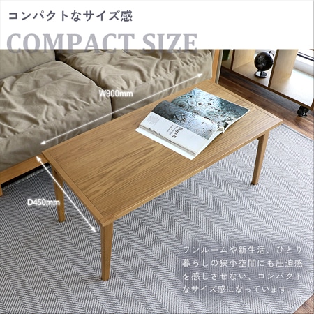 リビングテーブルに使われているのは、天然木のオーク材。繊維板にオークの突板を張り合わせた素材と、天然木を効率よく組み合わせて作られており、表面はワイビング加工により、美しい木目もしっかりと見る事が出来ます。横から見ると、ヴィンテージ家具に見られる意匠を取り入れており、シンプルながら表情のあるデザインの机になっています。